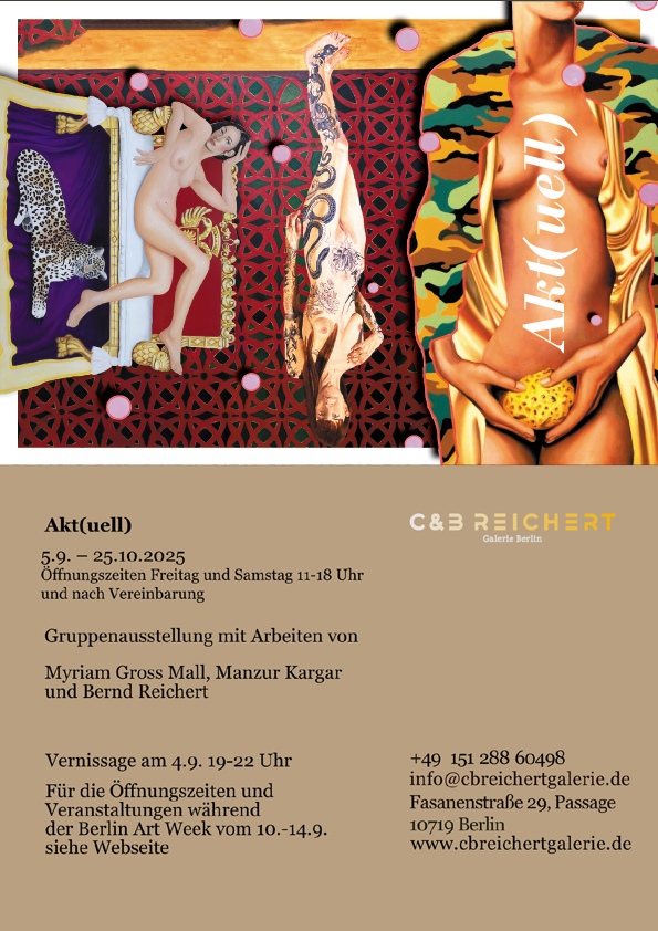 On display at C&B REICHERT Gallery presenting ‚Akt(uell), a group show with works by Myriam Gross Mall, Manzur Kargar, and Bernd Reichert.